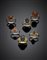 Sei anelli di varia foggia con pietre dure scolpite, corallo e granato,...