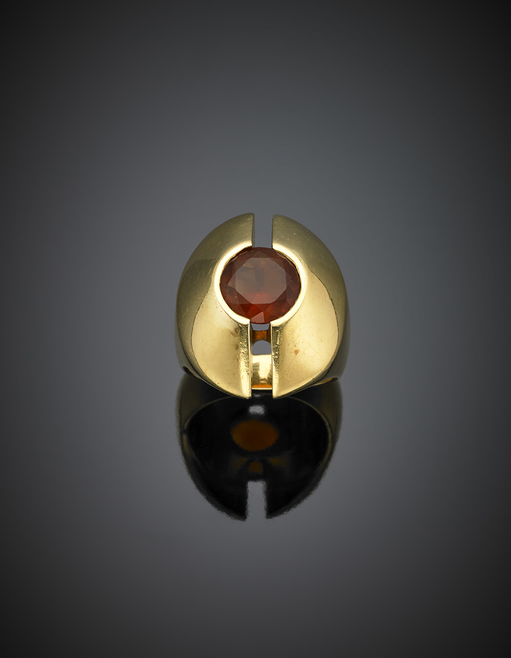 Lotto 1159 | MANCADORIAnello in oro giallo con al centro un quarzo citrino rotondo, g...
