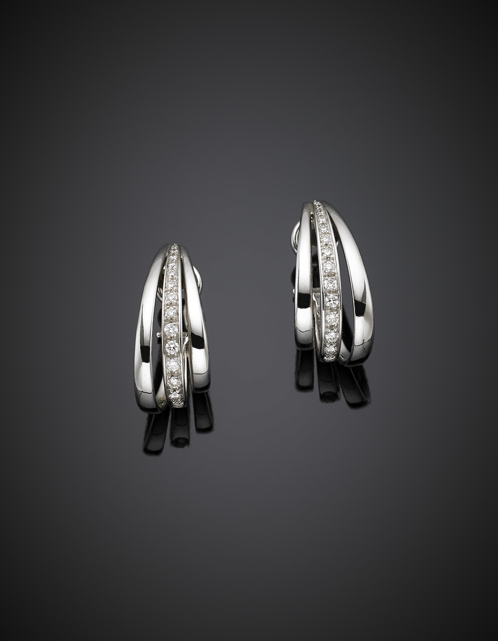 Orecchini a lobo con perno e clip in oro bianco e diamanti, g 17,63.-ENWhite...