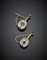 Lotto composto da due spille con pendenti due mandolini gioiello contenenti due piccoli orologi, entrambi rifiniti con smalti e diamanti su oro giallo, ciascuno lungh. cm 5 circa, complessivi g 55,32.