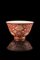 Coppa in porcellana a smalti rosso corallo a decoro floreale in riserva,...