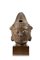 Scultura in ferro raffigurante testa di Guanyin, con base in legno (difetti)