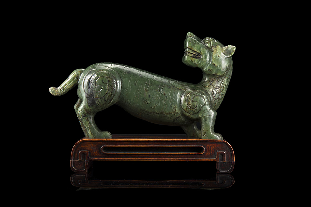 Leone in nefrite, con base in legnoCina, secolo XX( h. 18 cm.)-ENA nephrite...