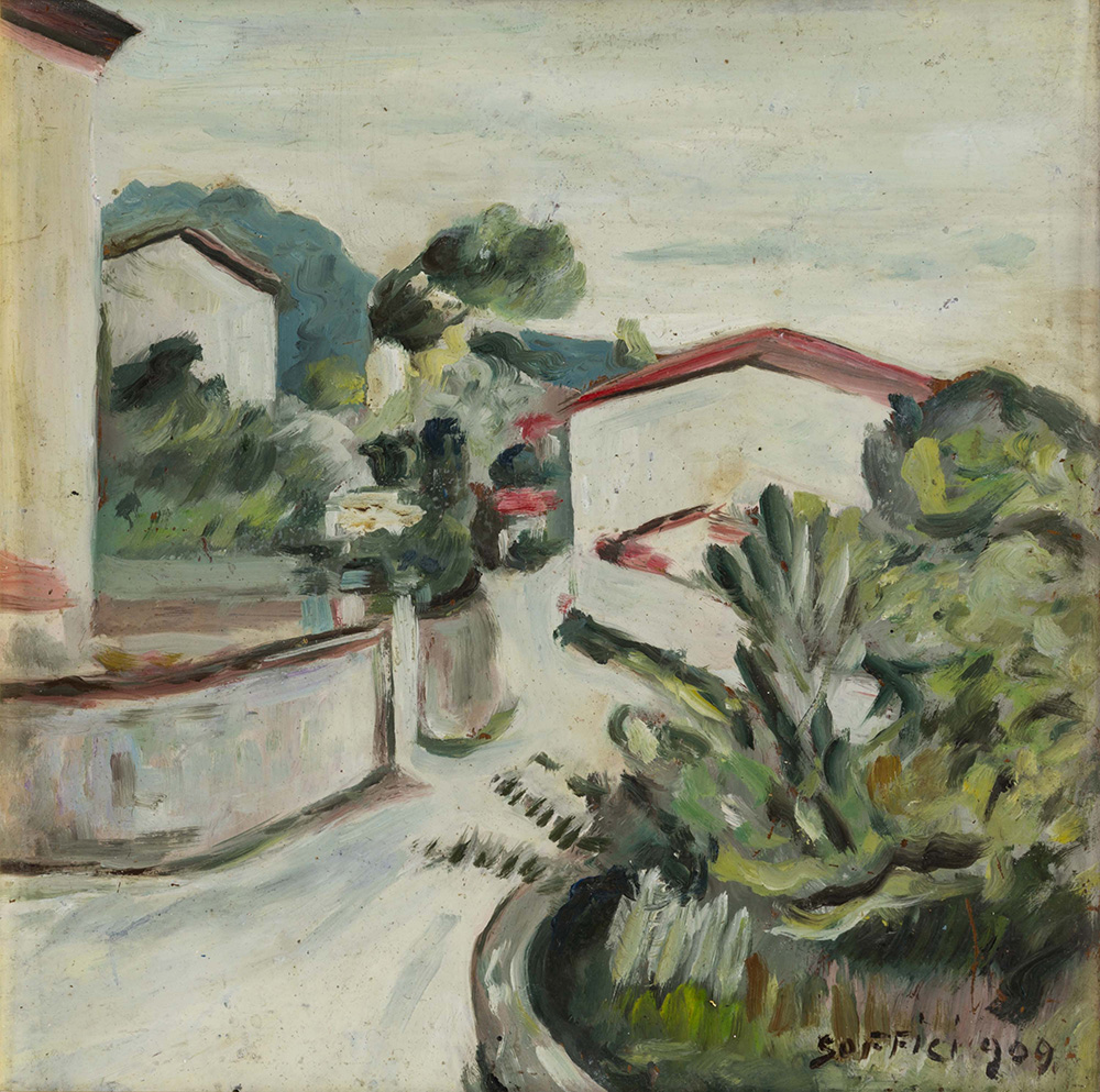 ARDENGO SOFFICI (1879 - 1964) Strada del poggio 1909 Olio su tavola 22,9 x...