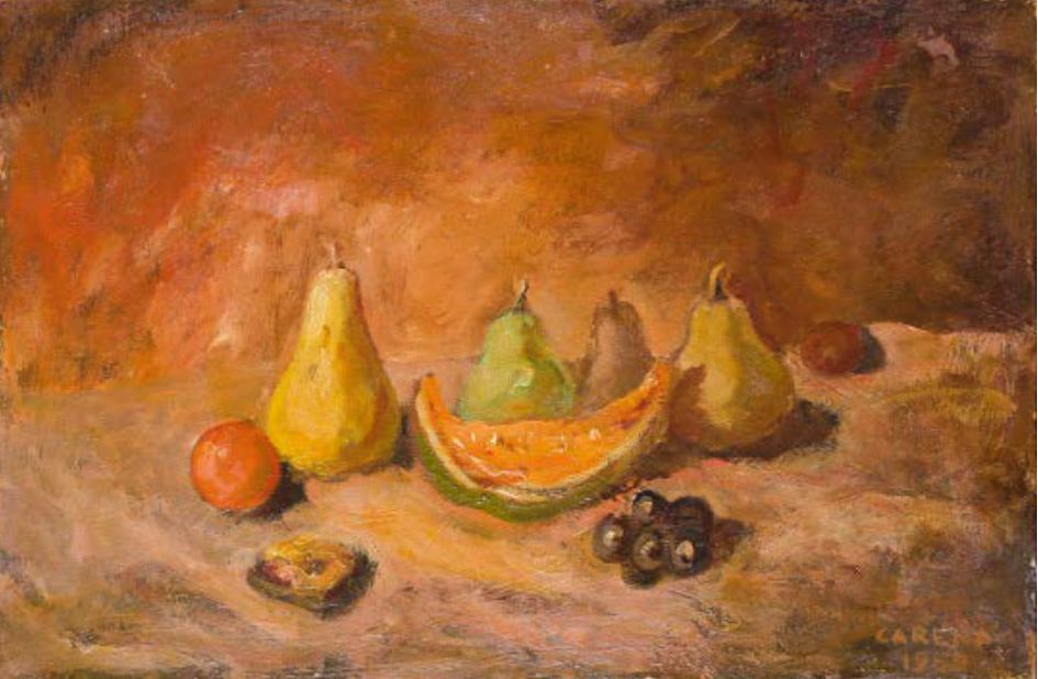 FELICE CARENA Cumiana 1879 – Venezia 1966 NATURA MORTA, 1940 olio su cartoncino, cm 38,8x60.Firmato e datato in basso a destra: CARENA 1940. Provenienza: Milano, Vittorio Barbaroux, n. 366 (timbro al verso)