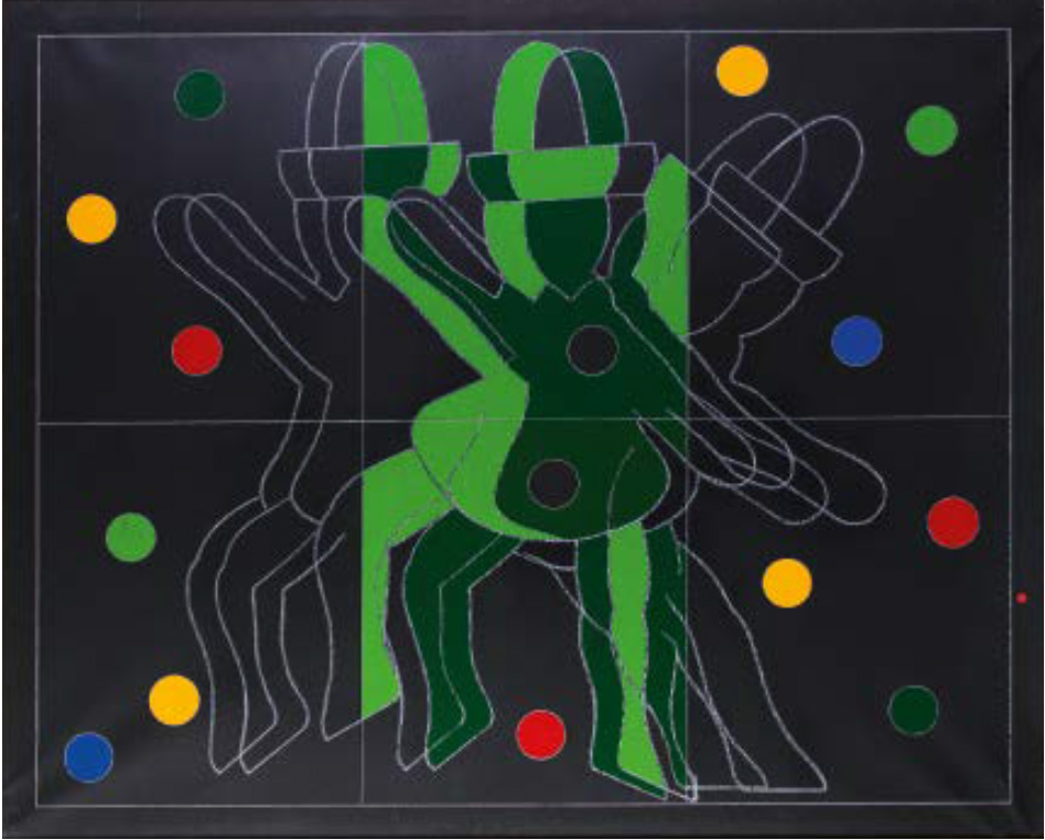 FRANCO ANGELI Roma 1935 – 1988 SIRIMIRI, 1987-88 tecnica mista su tela, cm 130x160. Firmato e titolato al verso: Franco Angeli “Sirimiri”. Opera accompagnata da autentica dell’Archivio Franco Angeli, n. P-090317/107