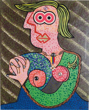 ENRICO BAJ Milano 1924 – Vergiate 2003 SENZA TITOLO multiplo su carta, cm 82x68. Firmato in basso a destra: Baj. Numerato in basso a sinistra: 100/1100