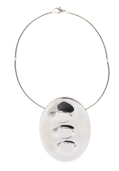 TURI SIMETI Alcamo 1929 COLLANA IN ARGENTO BRUNITO con pendente con tre ovali in rilievo, eseguito su disegno dell’artista da Marylart. Firmata e numerata: Simeti III/IV PA. Autentica su foto firmata dall’artista
