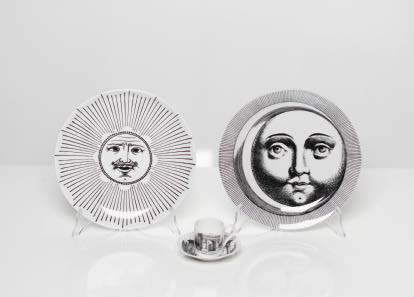 PIERO FORNASETTI (1913-1988) Lotto di n. 2 piatti numerati della collezione “Soli e lune”. diametro cm 25,8