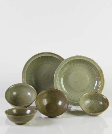 MANIFATTURA VIETNAMITA Servizio in terraglia composto da n. 4 coppette e n. 2 piatti. Diametro da cm 16 a cm 36.