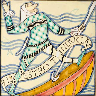 ILARIO CIAURRO (1889-1992) Coppia di piastrelle incorniciate raffiguranti...