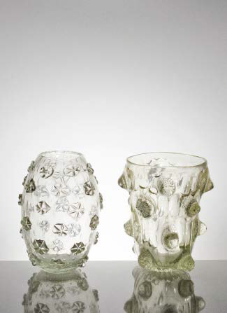 ERCOLE BAROVIER (1889-1974) BAROVIER & TOSO Vaso della serie “A Mugnoni” in vetro pesante trasparente decorato con prominenze contenenti bolle d’aria, 1940 circa. altezza cm 35