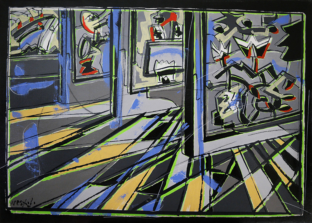 Ugo Nespolo Grey museum 2003 Acrilico su tela 68 x 96 cm Firmato in basso a sinistra Titolo, tecnica, misure sul retro
