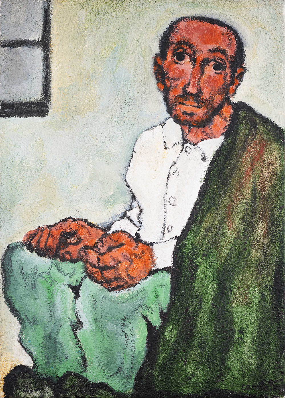 Domenico Cantatore Uomo del sud Primi anni '80 Acrilico su tela 70 x 50 cm Firmato in basso a destra Timbro dell'Archivio Generale Il Mappamondo, Milano sul retro