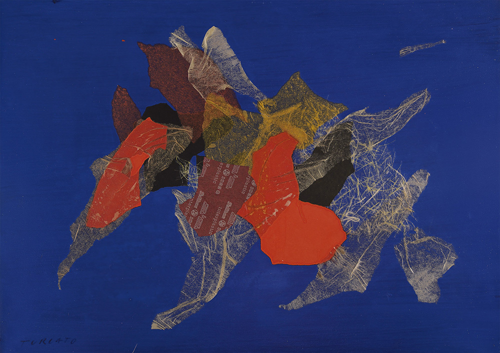 Giulio Turcato Collage 1971 Olio, collage e tecnica mista su tela 50.5 x 70 cm Firmato in basso a sinistra Firma e n. archivio L.215621381222 RPost sul retro