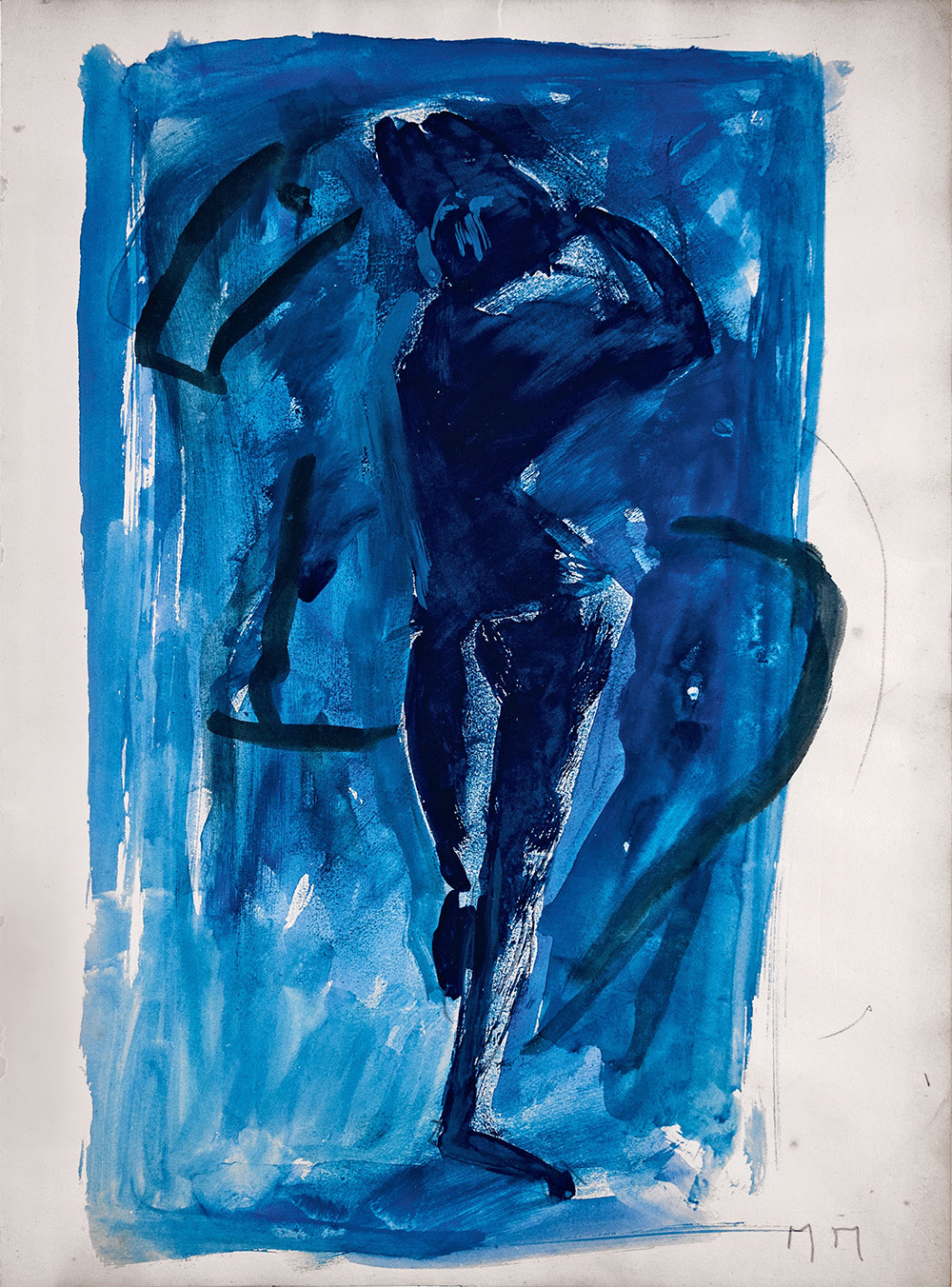 Marino Marini Rapsodia in blu Tempera su carta 32 x 23.5 cm Firma con sigla in basso a destra