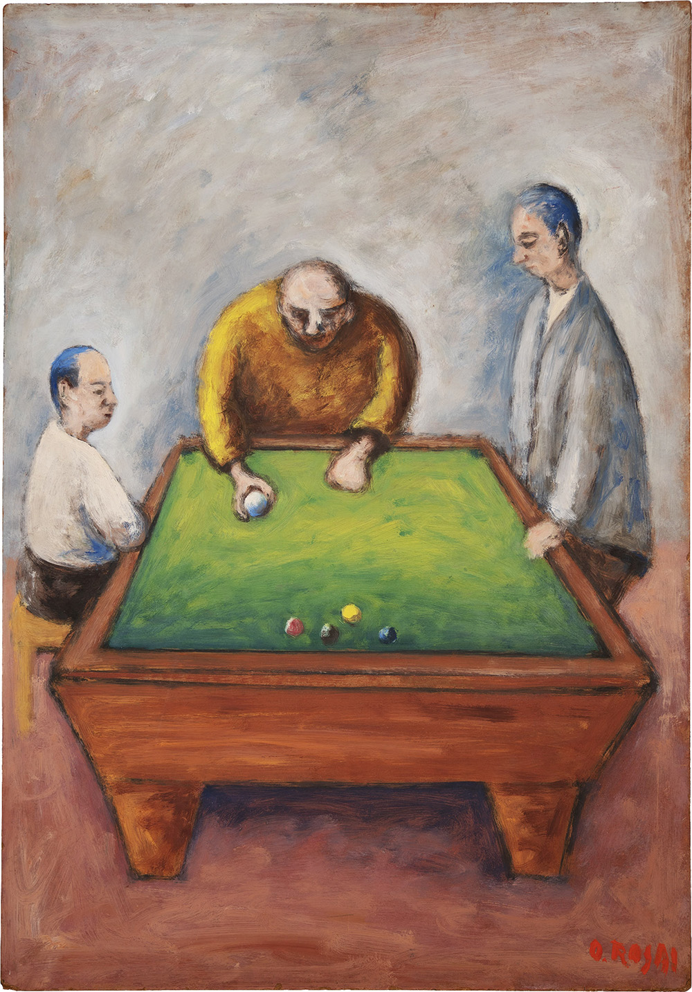 Ottone Rosai Il biliardo (1956) Olio su masonite 100.3 x 69.7 cm Firmato in basso a destra Etichetta della Galleria Giraldi, Livorno; Sigla BG [ Bruno Giraldi ] sul retro