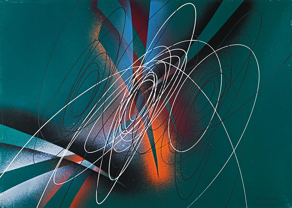 Roberto Crippa Spirale 1971 olio su cartoncino 50 x 70 cm Firma e data in basso a destra