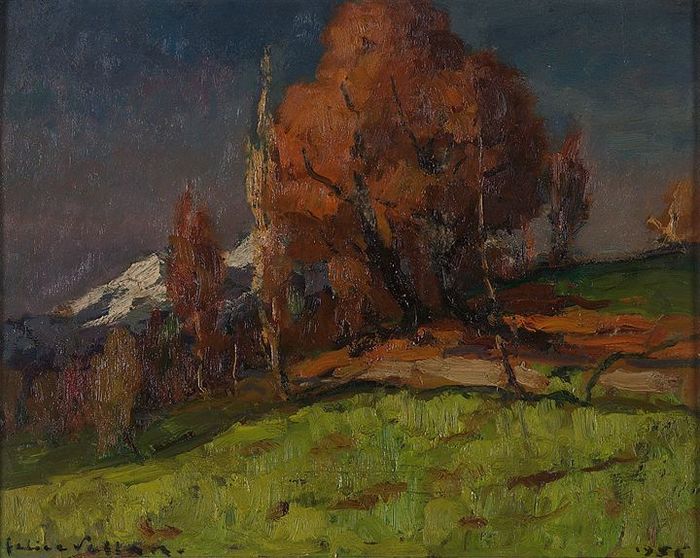 VELLAN FELICE Torino 1889 - 1976 "Autunno in Val d'Aosta" 1956 35x45 olio su...