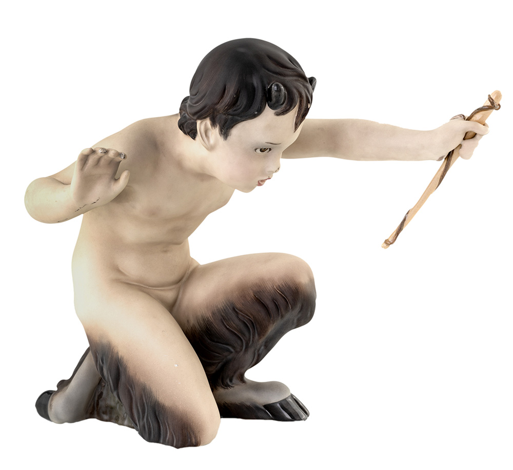 C.I.A MANNA TORINO 1950 ca. FIGURA DI FAUNO con una fionda in mano. Terraglia...