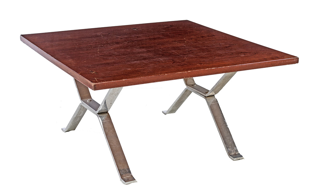 GIANFRANCO FRATTINI (Attr.)1960 TAVOLINO base in in acciaio, piano in mogano, prod. Italia, cm 36x69x69