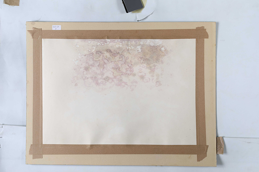 ANTONIO SANFILIPPO (Partanna 1923-Roma 1980) SENZA TITOLO tempera su carta, cm 35x50. Firma e data sul fronte in basso a destra "Sanfilippo '65". L'opera presenta difetti.