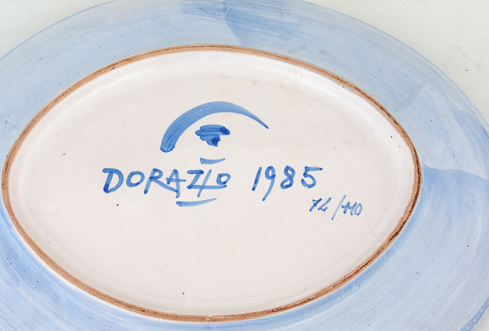 PIERO DORAZIO (Roma 1927-Perugia 2005) SENZA TITOLO ceramica ovale di 24x30 cm. Sul retro reca firma, data e numerazione "Dorazio, 1985, 74/110".
