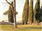 FRANCESCO PARISI (Roma 1972) PAESAGGIO CON CIPRESSI pastello su carta, cm 36x49. Firmato in basso a sinistra "Francesco Parisi". Timbro sul retro Galleria Russo, Roma
