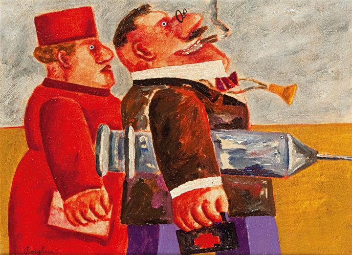 BORGHESE FRANZ Roma 1941 - 2005 "La malasanità" 30x40 olio su tela Opera...