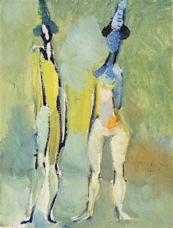 ANTONIO VANGELLI (Roma 1917-Roma 2003) DUE FIGURE olio su tela, cm 40x30,...