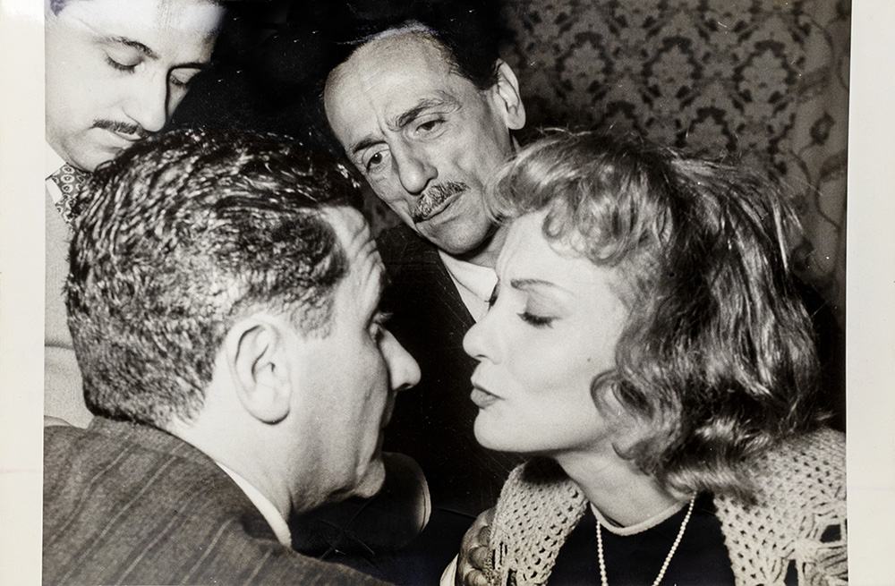 GIOVANNI BATTISTA POLETTO (Roma 1915-Roma 1988) EDUARDO DE FILIPPO CON PAOLO STOPPA E ISA MIRANDA, 1952 durante le riprese dell'episodio "L'avarizia e l'ira" del film "I sette peccati capitali". Stampa alla gelatina ai sali d'argento, cm 12x18. Al retro timbro dell'autore.