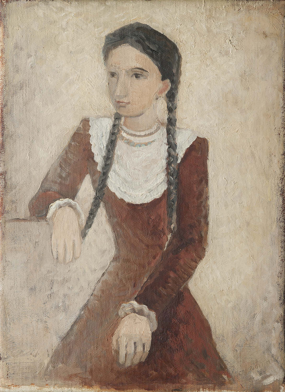 Massimo Campigli (Berlin/Berlino 1895 – Saint-Tropez 1971) Ritratto di fanciulla, Anni ‘30;Olio su tela, 42 x 30,5 cm