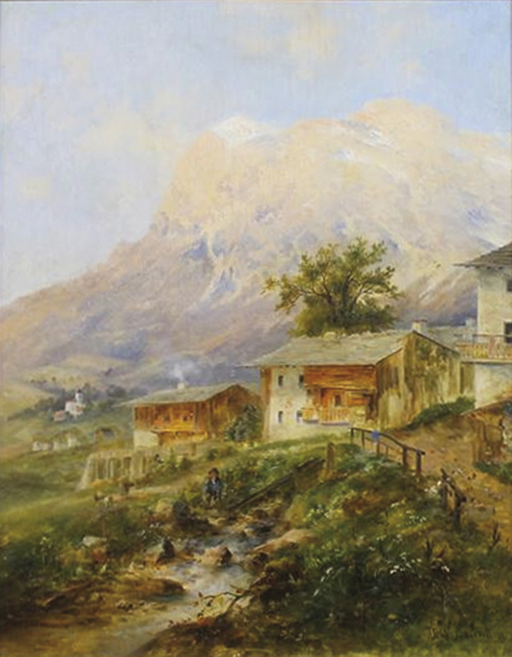 Emil Barbarini (Wien/Vienna 1855 – 1930) Cortina d’Ampezzo;Olio su tavola, 53 x 41 cm, in cornice