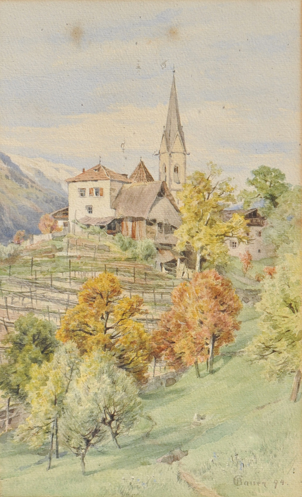 Gustav Bauer Villaggio presso Merano, 1894;Acquerello, 25,5 x 15,5 cm, in...