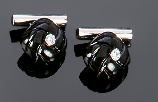 Lotto 161 | GEMELLI Coppia di gemelli in onice e oro bianco con diamanti taglio brillante...