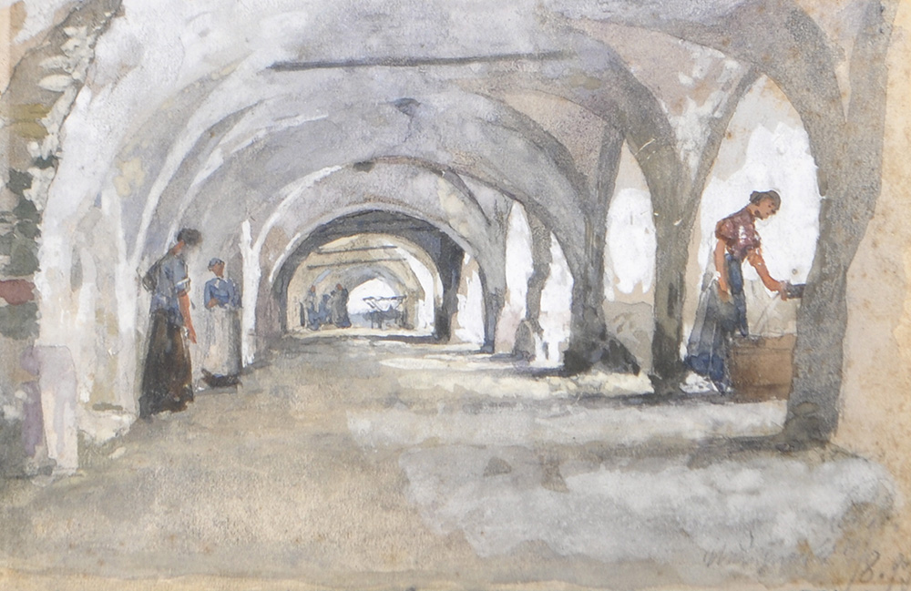Maler des späten 19. Jh./Pittore del tardo Ottocento I portici di Egna, 1897;Acquerello, 11,5 x 17,5 cm, in cornice