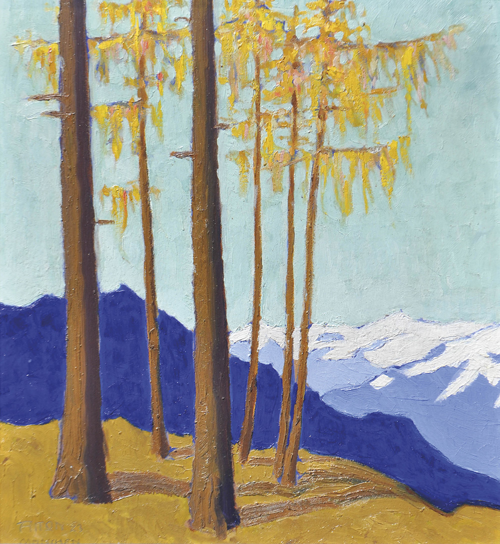Lois Alton Larici in autunno, 1923;Olio su cartone, 53 x 48 cm, in cornice