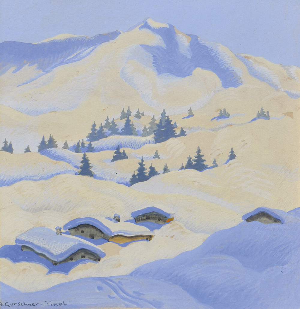 Herbert Gurschner (Bozen/Bolzano 1917 – 2005) Paesaggio invernale tirolese;Tempera, 22 x 21,5 cm, in cornice