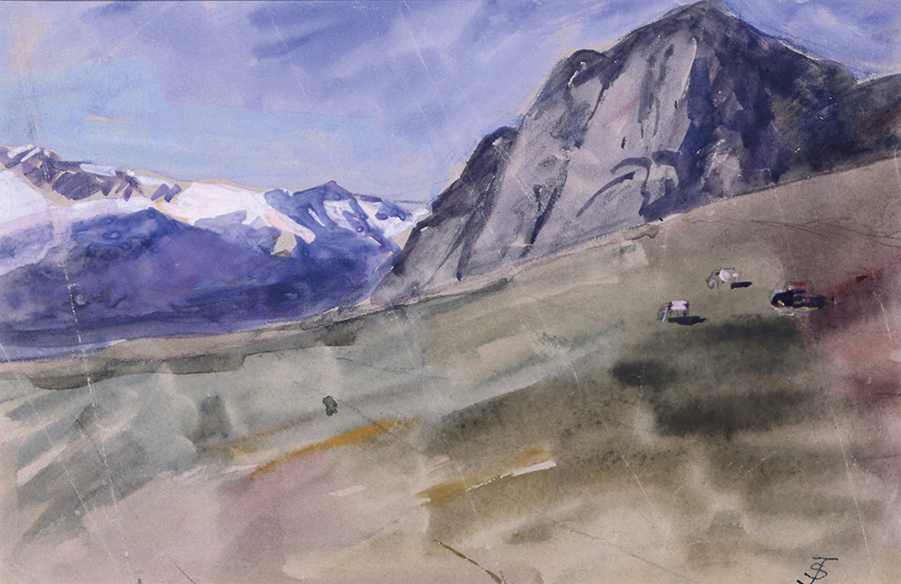 Ignaz Stolz (Bozen/Bolzano 1868 – Lana 1953) Paesaggio alpino, 1925;Acquerello, 20 x 29 cm, in cornice