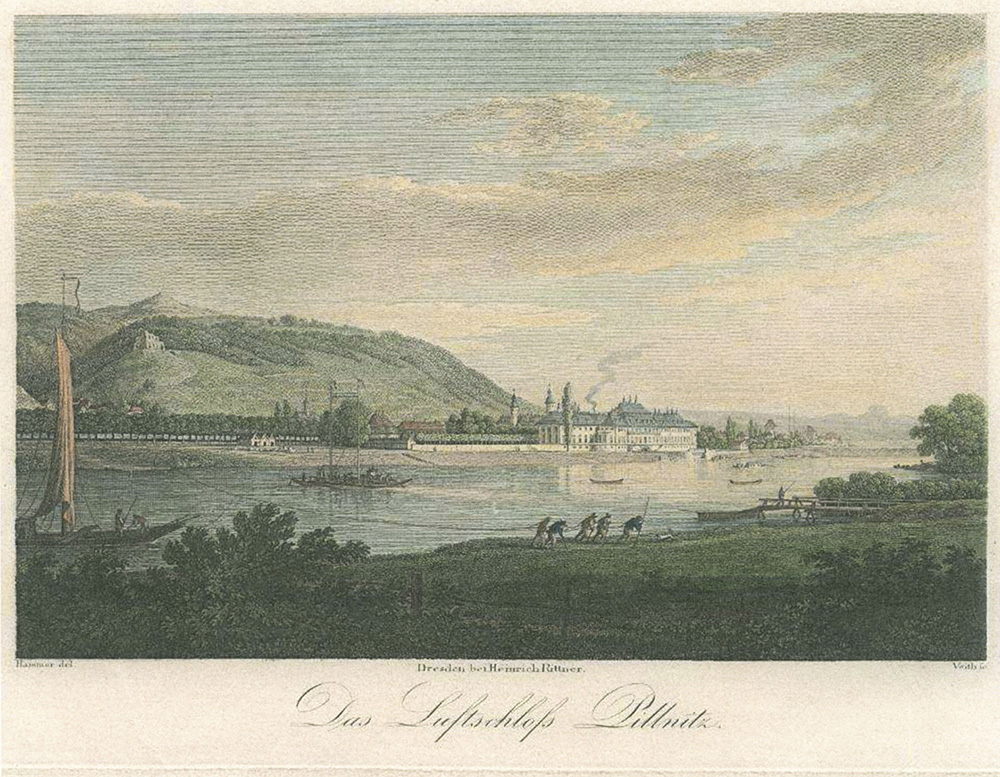 Hammer / Veith Il castello di campagna Pillnitz;Incisione su acciaio, 24 x 30 cm
