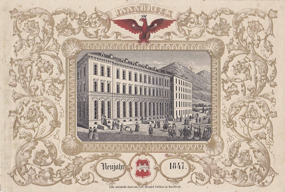 - Innsbruck capodanno 1847;Litografia, 15,7 x 23,5 cm