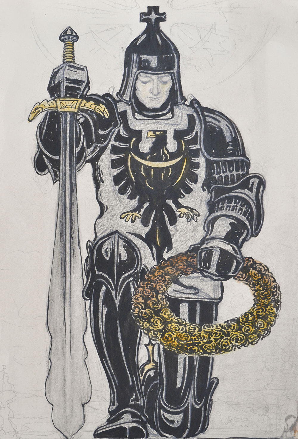 Hugo Grimm (Feldkirch 1866 – Kitzbühel 1944) Foglio commemorativo per i caduti 1914–1918;China, Matita, acquerello, 39,7 x 28,8 cm