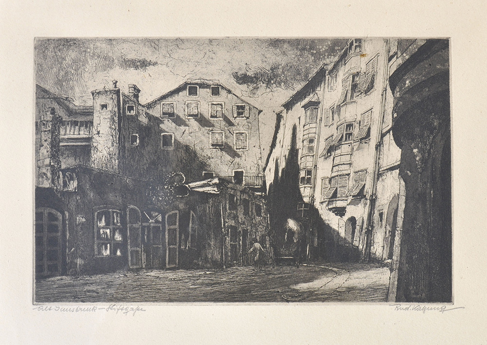 Rudolf Katzung Vecchia Innsbruck - Stiftgasse;Acquaforte, 18,8 x 29,8 cm (lastra), in cornice