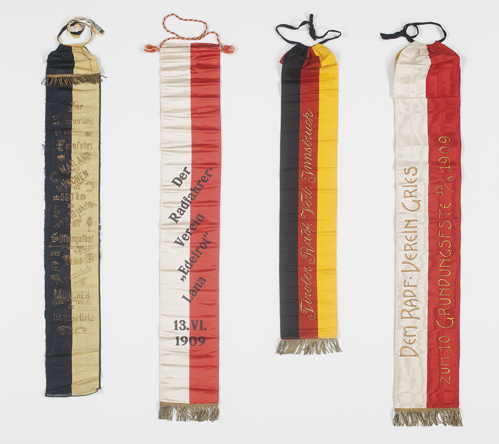 Banner Zur Erinnerung an die Fernfahrt Mailand München, 1912;ricamate su raso, 92x 154,5 cm,