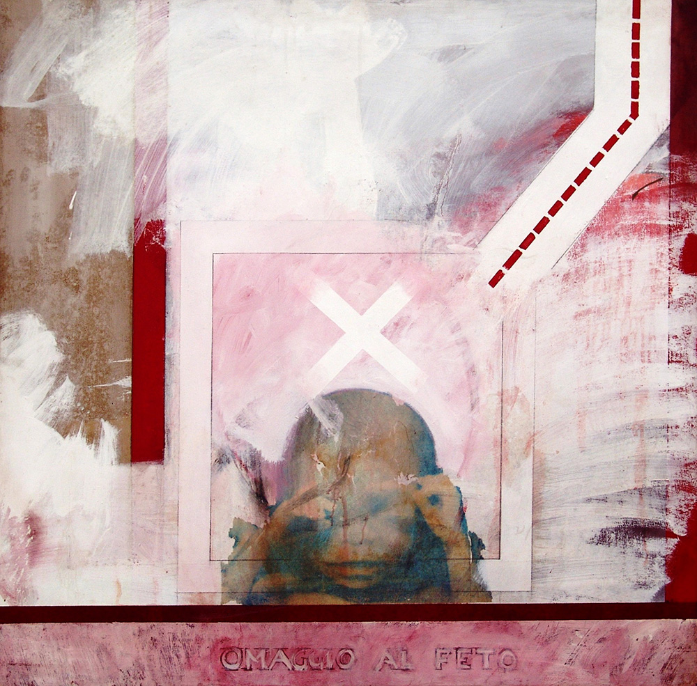 Paolo Baratella 1935, Bologna (Bo) - [Italia] Omaggio al feto olio su tela 100x100 cm 1987 firma dell'artista in basso a sinistra; provenienza studio dell'artista, successivamente Galleria Pagani di Milano, attualmente collezione privata certificato di autenticità Picenum