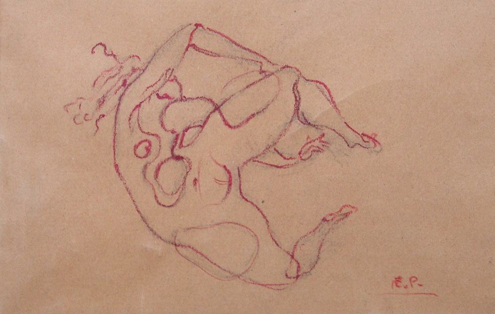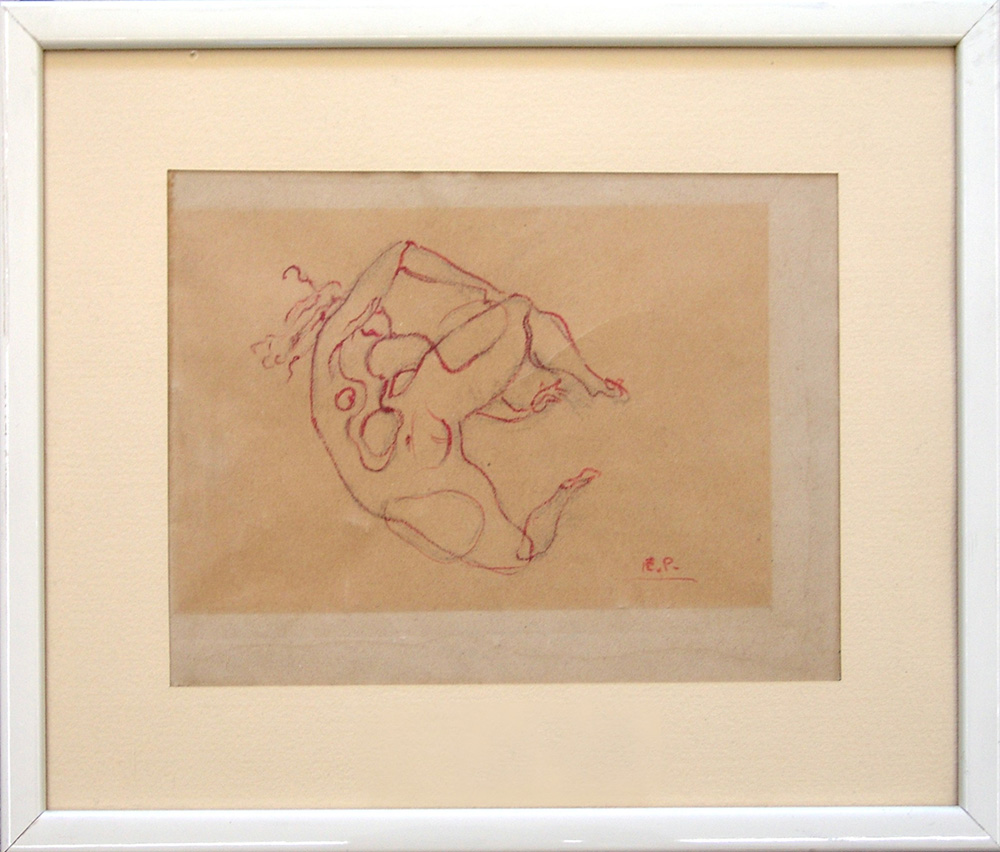 Enrico Prampolini 1894, Modena (Mo) - 1956, Roma (Rm) - [Italia] Nudo di donna sanguigna e grafite su carta 16,8x22 cm 1942 firma dell’artista in basso a destra; opera con cornice; provenienza precedente Galleria d'Arte Il Sole di Perugia certificato di autenticità Picenum