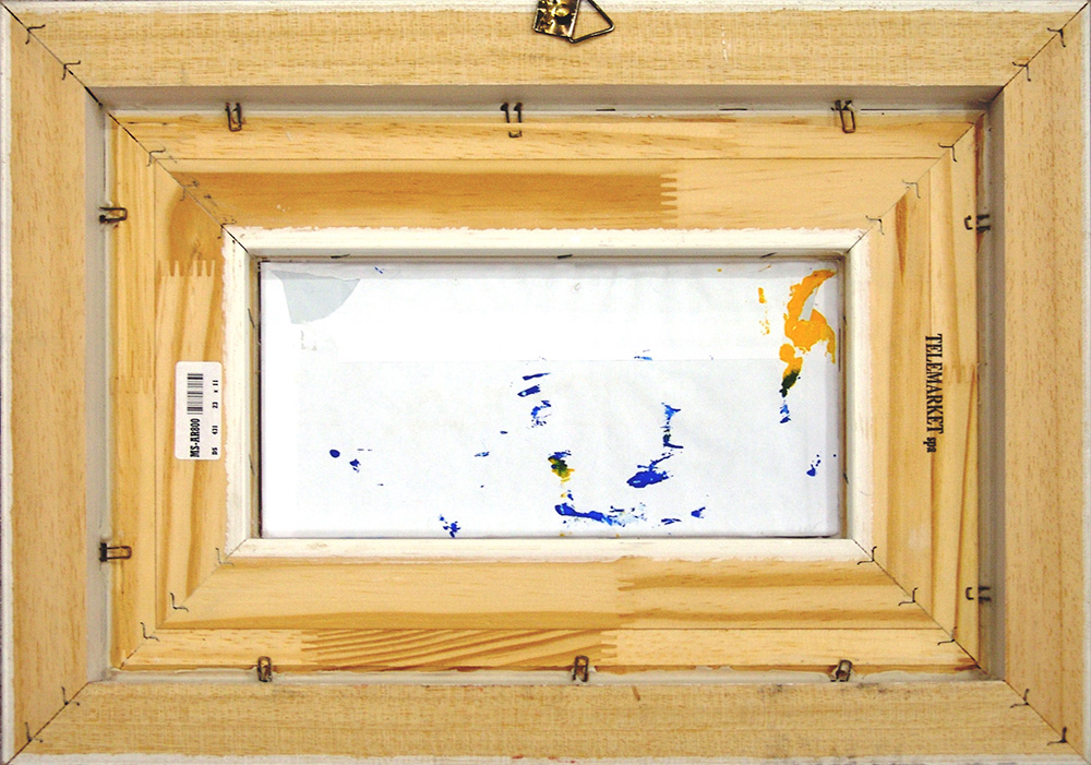 Mario Schifano 1934, Homs (Libia) - 1998, Roma (Rm) - [Italia] senza titolo smalto e pennarello su busta 11x23 cm 1994 firma dell'artista in alto a destra; opera con cornice opera archiviata dalla Fondazione M. S. Multistudio numero B97/094 - XCII/94 nel 2006; certificato di autenticità Telemarket