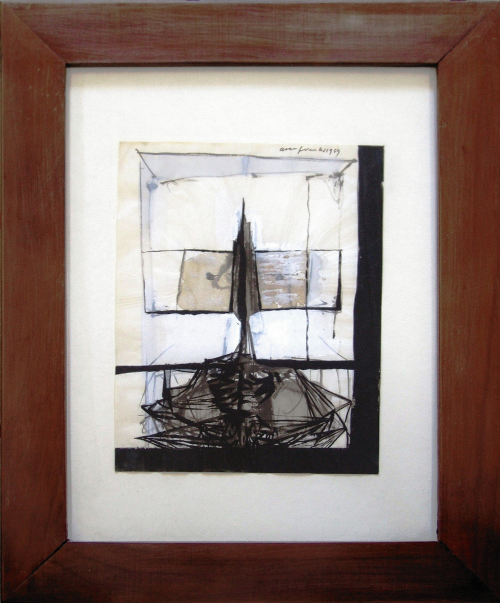 Cesare Peverelli 1922, Milano (Mi) - 2000, Parigi (Francia) - [Italia] senza titolo tecnica mista su carta 27x20,8 cm 1959 firma dell'artista in alto a destra; opera con cornice certificato di autenticità della Galleria La Scaletta di Reggio Emilia sul retro