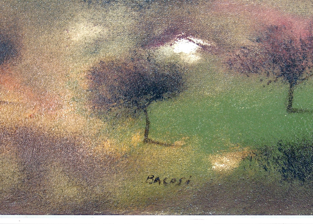 Manlio Bacosi 1921, Perugia (Pg) - 1998, Perugia (Pg) - [Italia] Lago Trasimeno olio su tela 50x60 cm c. 1980 firma dell'artista in basso; opera con cornice certificato di autenticità Picenum