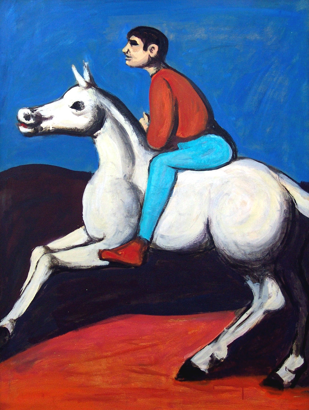Pompeo Borra 1898, Milano (Mi) - 1973, Milano (Mi) - [Italia] Cavaliere olio su tela 80x60 cm 1965 firma dell'artista in basso a destra; opera con cornice certificato di autenticità dell'Archivio generale Pompeo Borra curato dalla Galleria Giorgio Ghelfi di Verona